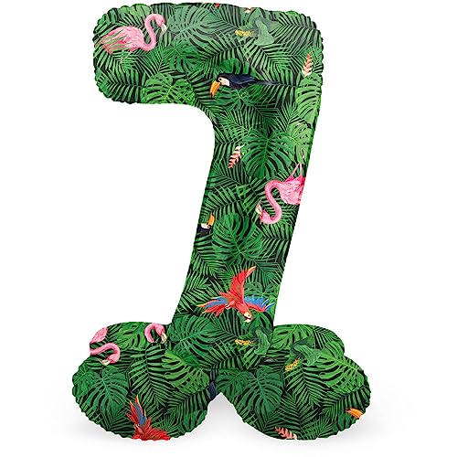 Folat 63947 Ballon Aluminium Numéro avec base Chiffre 7 Jungle Vibe 72 cm-Pour Date, Anniversaire, Décoration, pas besoin d'hélium, Vert