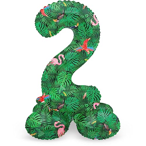 Folat- Zahl 63942 Ballon Aluminium Numéro avec Base Chiffre 2 Jungle Vibe 72 cm-pour Date, Anniversaire, Décoration, Pas Besoin d'hélium, Vert
