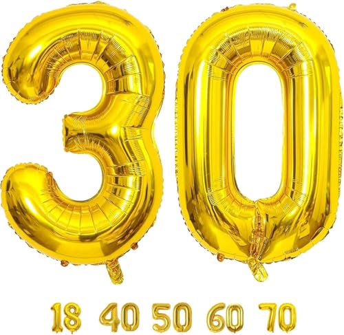 LAC Ballon 30 Ans Anniversaire Doré - Decoration Anniversaire 30 ans Homme Femme - Helium Chiffre Ballon