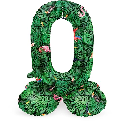 Folat- Zahl 63940 Ballon Aluminium Numéro avec Base Chiffre 0 Jungle Vibe 72 cm-pour Date, Anniversaire, Décoration, Pas Besoin d'hélium, Vert