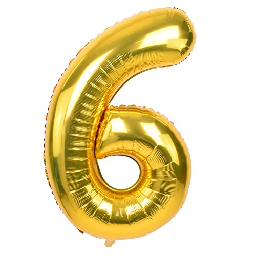 TONIFUL 0 to 9 Anniversaire Chiffres Dorés Ballon 40 Pouces, Numéro 6 Géant Numéro Ballon Décoration Grand Ballons à Hélium Numérique en Aluminium Fête Festival Mariage Party(6)