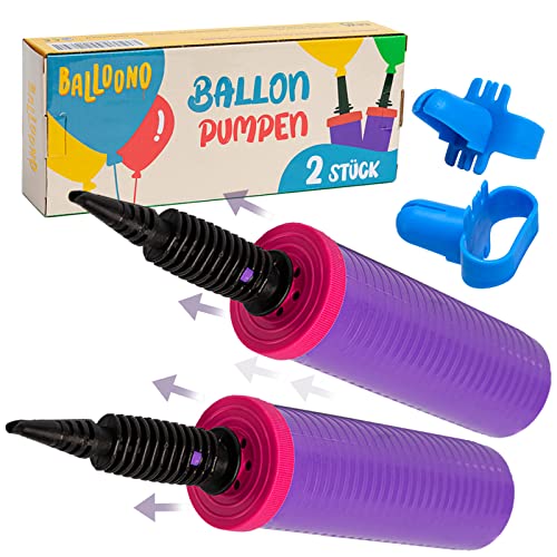 Balloono Gonfleur Ballon Lot de 2 - pour Un Gonflage Rapide et Facile - Pompe à Ballon de Baudruche Manuelle - Pompes a Air ou Helium Rapide pour Anniversaire
