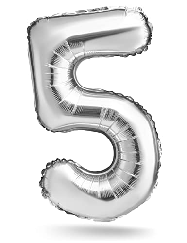 Ballon numéroté, argenté, 40 cm, décoration d'anniversaire, anniversaire d'enfant, jubilé, cadeau Ballon en plastique pour air ou hélium comme anniversaire, mariage fin de fête(chiffre 5)