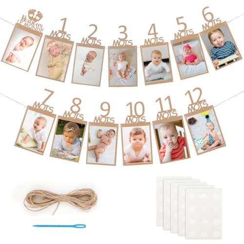 Banderole Photo Anniversaire 1 an, Guirlande Anniversaire 1 an Guirlande photo Banderole Fille Garcon Party Décor Papier Kraft Bannières d'affichage pour Documenter la Croissance de Janvier à Décembre