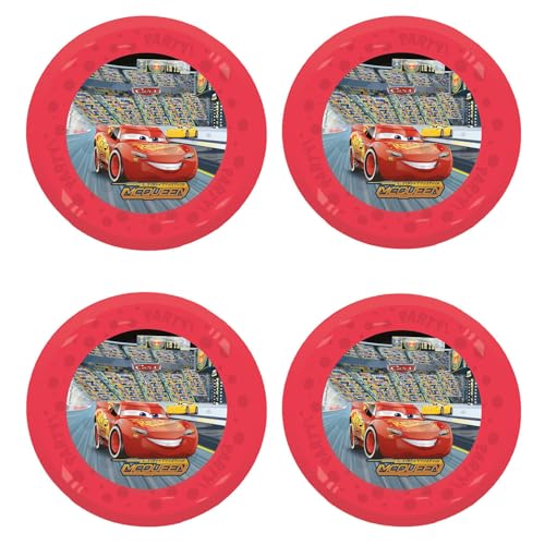 Procos - Assiettes Cars, plastique, 4 pièces, réutilisables, vaisselle de fête pour anniversaire ou fête à thème, voitures et véhicules