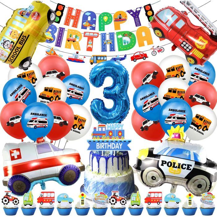 Balloon Anniversaire Voiture 3 AnsDécoration Anniversaire Cars EnfantTransport Anniversaire Fête Kit avec Bannière Gâteau Deco