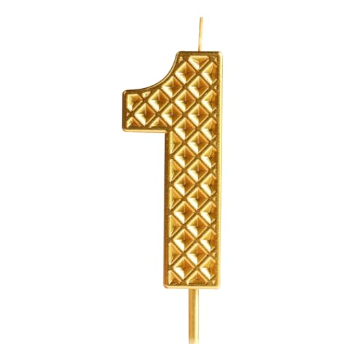 Bougie Anniversaire Chiffre 1, Gaufre Modèle Bougie Gateau Anniversair, Decoration Gateau Anniversaire Or pour 1 an Garçon Fille, Deco Gateau Anniversaire Bougies Anniversaire Originales