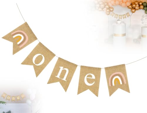 Lhbwhiz Décoration de 1er anniversaire,bannière en toile de jute arc-en-ciel pour 1 an,première guirlande pour garçon et fille,décoration d'anniversaire pour 1 an,décorations pour premier anniversaire