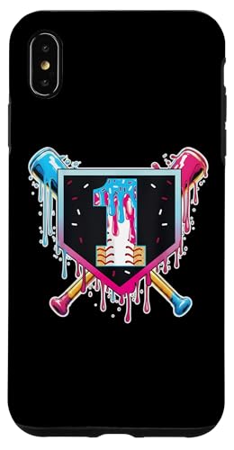 Joueur de Baseball 1 an garçon Glace Goutte à Goutte 1er Anniversaire Coque pour iPhone XS Max