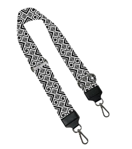 PTNKUIIY 72-130 cm - Bandoulière réglable pour sacs - 5 cm - Style bohème - Sangle de sac large avec mousqueton doré - Anse de sac - Pour sacs et sacs à main - Accessoires de bricolage - Gris et blanc