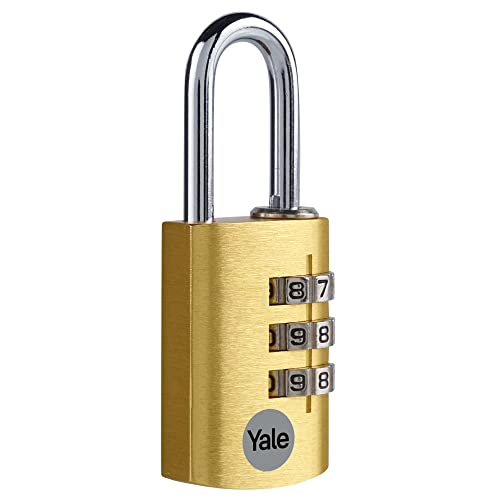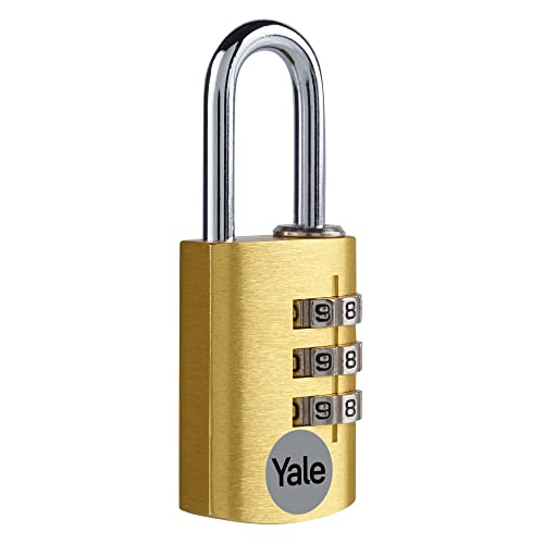 Yale YE3CB/20/121/1/GO - Cadenas aluminium à combinaison 20 mm, anse acier, laiton, code à 3 chiffres - Pour casier, boîte à outils, sac...