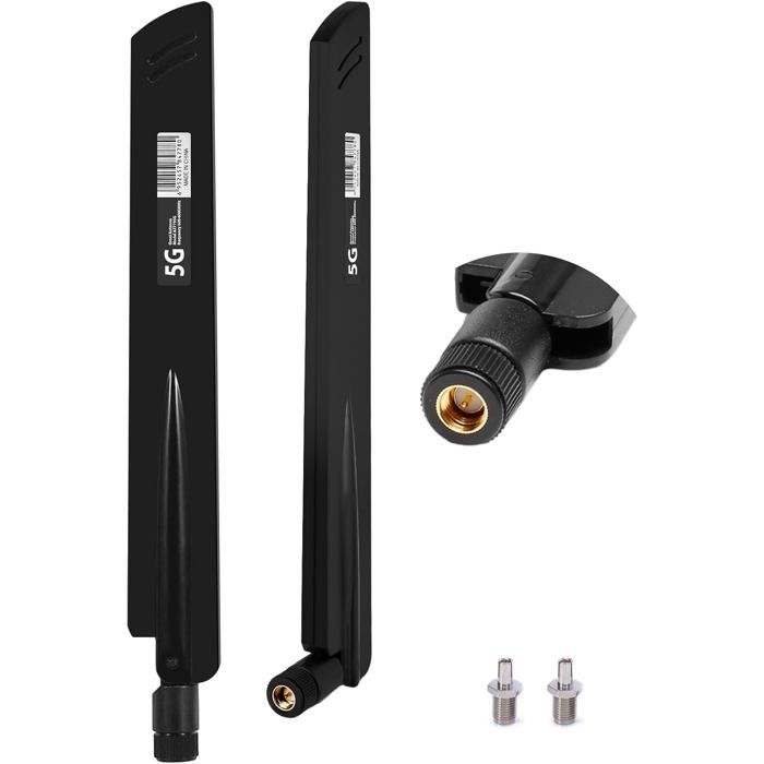 Antenne WiFi double bande longue portée 9dBi Gain 2,4 GHz/5 GHz/5,8 GHz Connecteur RP-SMA pour routeur Point d'accès amplificateur de signal Intérieur Extérieur (lot de 2)
