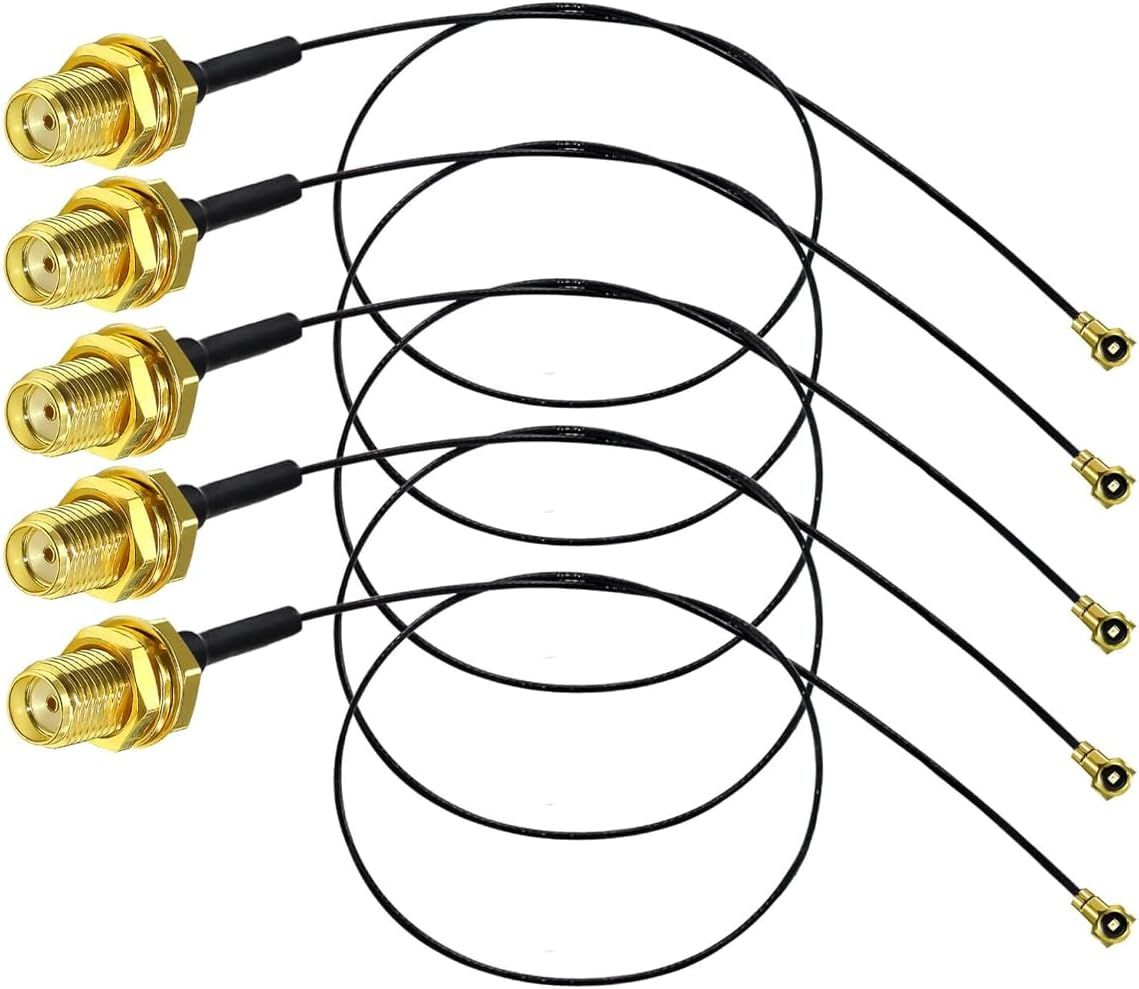Lot de 5 câbles d'antenne U.FL Mini PCI vers Inversion de polarité SMA Pigtail Câble WiFi IPEX vers SMA femelle Pigtail Adaptateur WiFi FPV Antenne Transmetteur Trou intérieur extérieur