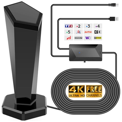 Antenne TV Intérieure Puissante - Optimisée pour 720p, 1080p, 4k - Réception Exceptionnelle des Chaînes TNT en Intérieur pour Une Expérience TV Impeccable