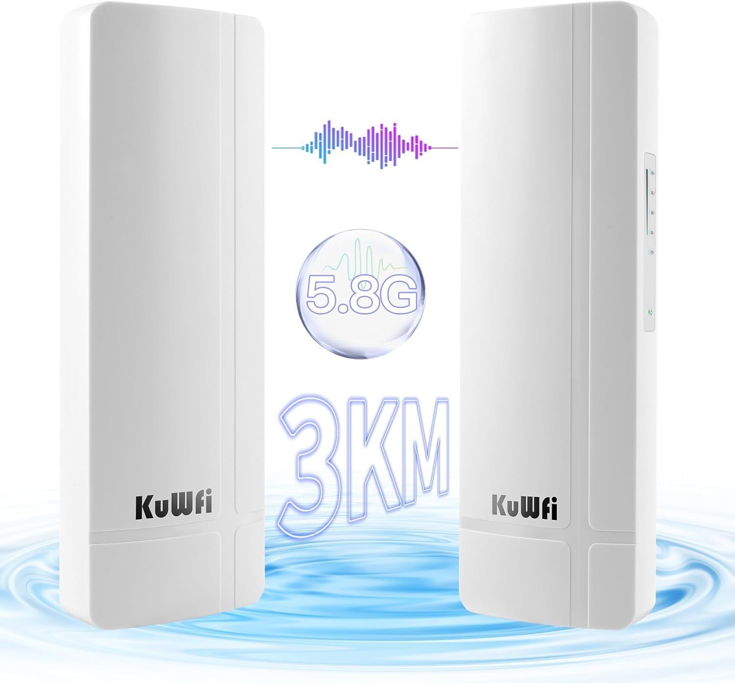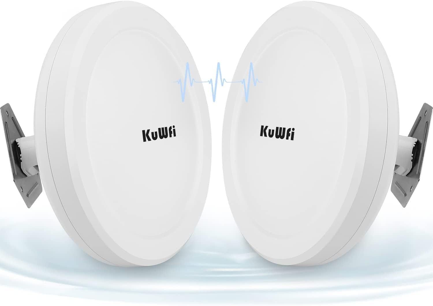 KuWFi 5.8G 3KM Pont WiFi Ethernet, Points d'accès WiFi avec Port Ethernet Gigabit, Borne WiFi Point d'accès WiFi Antenne WiFi Exterieur Dual Band | Plug and Play | 802.11ac | Adaptateur PoE 24 V