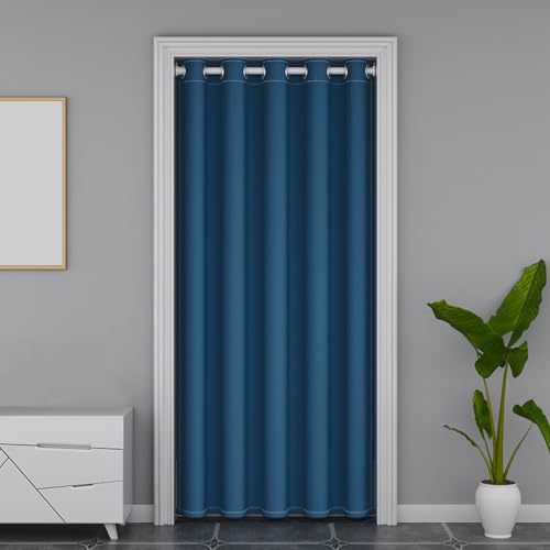 Icegrey Rideaux Occultants Isolation Thermique Rideaux à œillets Phonique Anti Bruit Rideau de Porte Interieur, Séparation de Pièce Rideau pour Salon et Cuisine, Bleu de mer