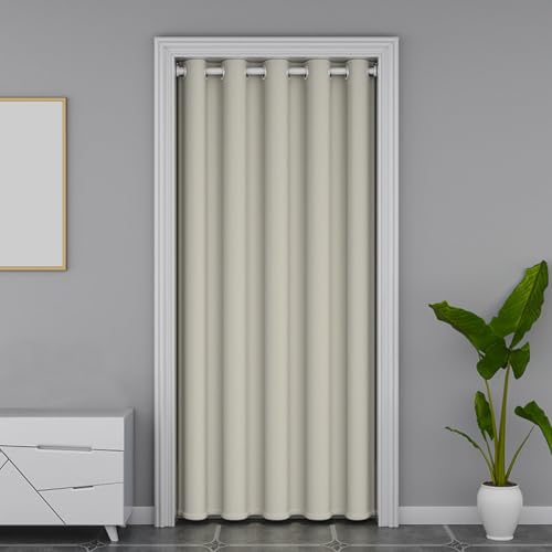 MRTREES Rideaux Occultant Beige Thermique Isolant Anti Bruit pour Porte Interieur Dressing et Salle à Manger, 132X210 CM, 1 Pièce, Rideau Opaque Anti Chaleur à Oeillets