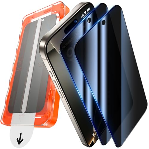UNBREAKcable Verre Trempé Anti-Espion pour iPhone 15 Pro, Anti-Espion 28°, Dureté 9H, Cadre d'installation Facile, Coque Compatible, Films de Protection d'écran Privée pour 6,1" iPhone 15 Pro-Lot de 2