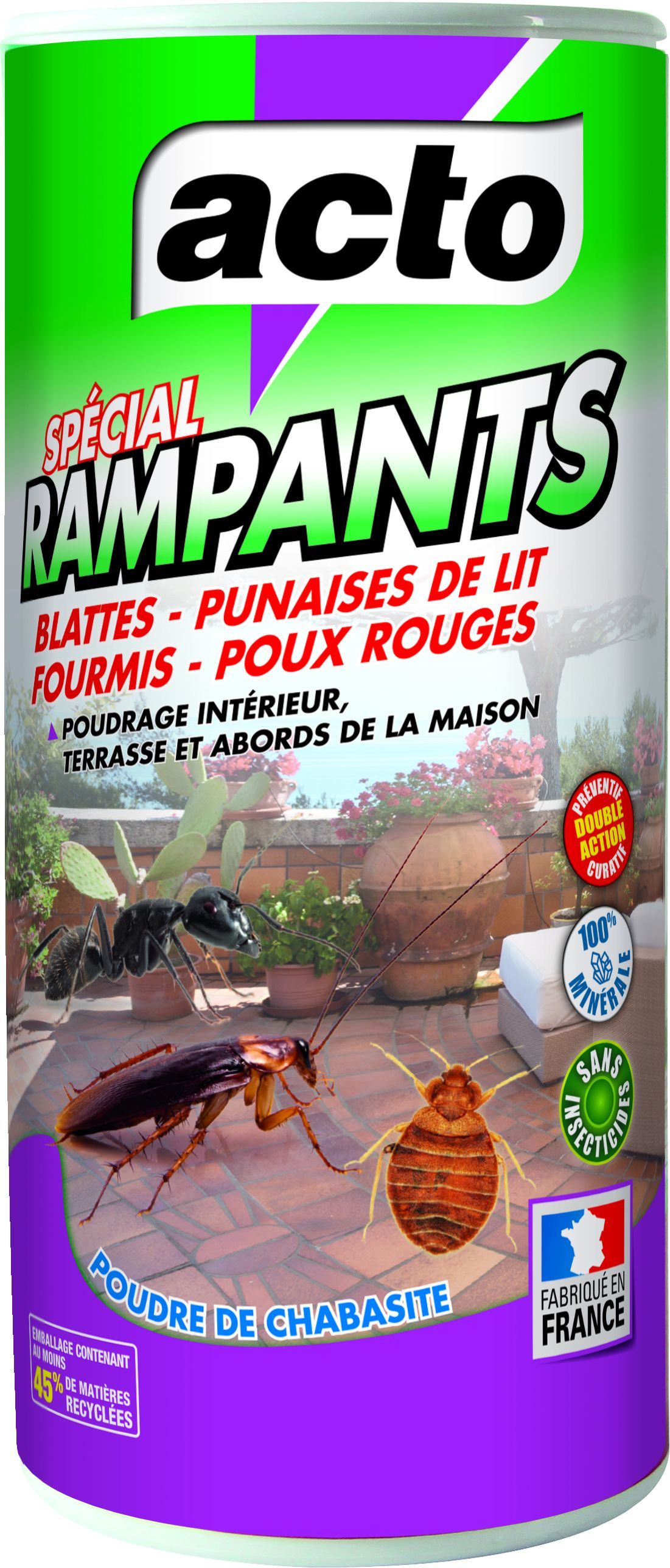 Poudre anti-rampants - ACTO - Spécial Rampants Chabasite - Élimine fourmis blattes punaises de lit poux rouges acariens