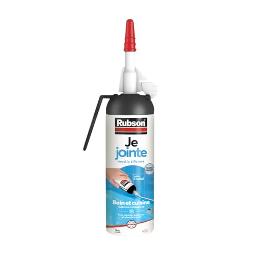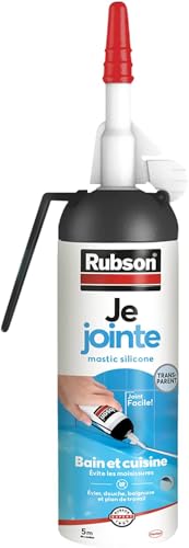 Rubson – Mastic Je Jointe transparent (MSP de 100 ml) – Mastic étanche anti-moisissures prêt à l'emploi – Silicone durable pour joints sanitaires spécial bain et cuisine
