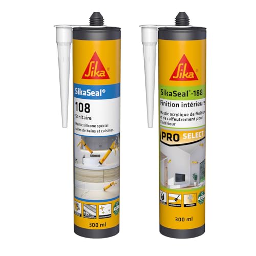 SikaSeal 108 Sanitaire Blanc, Mastic Cuisine & Salle de Bain Anti-Moisissures & SikaSeal-188 Finition intérieur, Blanc, Mastic acrylique pour joints de finitions, plinthes