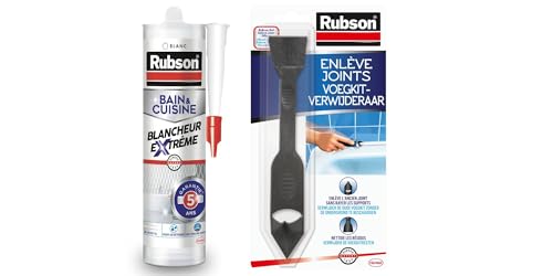 Rubson mastic bain & cuisine blanc Pur hygiène, mastic étanche et anti-moisissures à base de silicone + Rubson outils Enlève joint - permet d'éliminer facilement tout type d'ancien joint