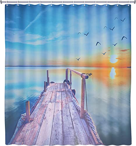 MSV Rideau de Douche Anti-moisissures et antibactérien Lavable avec 12 Anneaux de Rideau de Douche Polyester Coucher de Soleil 180 x 200 cm