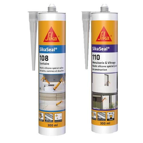 Sika SikaSeal-184 Maçonnerie, mastic acrylique haute performance pour joints d'étanchéité & eal 108 Sanitaire Blanc, Mastic Cuisine & Salle de Bain Anti-Moisissures