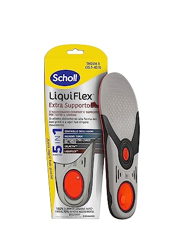 Scholl Liquiflex Extra Support, semelles réglables anti-odeurs en mousse à mémoire de forme avec technologie 5 en 1 pour chaussures de travail, bottes et chaussures de sécurité, taille S (35.5-40.5)