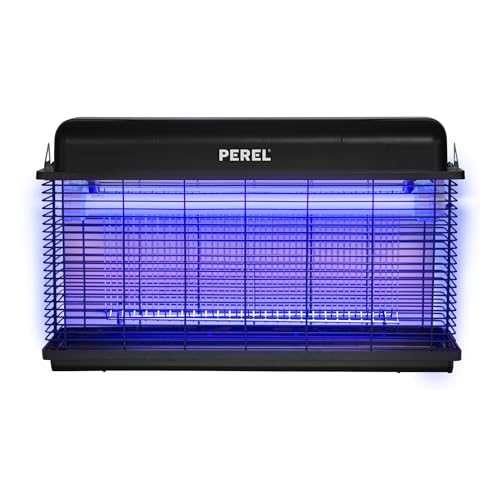 Perel Tueur d Insectes LED UV électrique, Grille 3000V, IPX4 Anti-éclaboussures, bac Amovible, Couverture 100 m², Appareil Puissant pour intérieur et extérieur