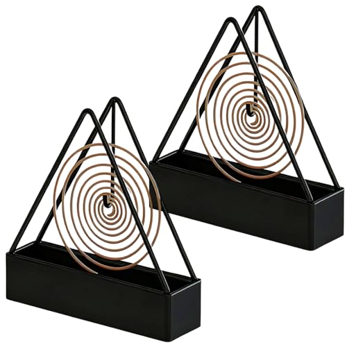 Kinoco 2 Pièces Support Bobine Anti-Moustique, Design Triangle Creux, Support Spirale pour Jardin et Camping,Noir
