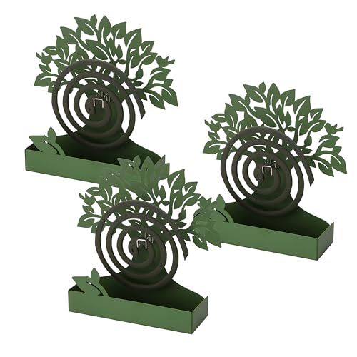 Baroni Home Lot de 3 Support Spirale Anti-Moustiques en Métal Porte-Encens, Porte-Zampiron en Métal pour Intérieur et Extérieur, Porte-Anti-Moustiques, Arbre Vert, 17x5x17 cm