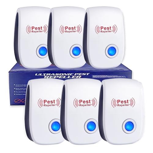 6 Pack Répulsif Ultrason Anti-Rongeurs Insectes, Ultrason Anti Moustique Ultrason Souris et Rats, Intérieur Répulsif Électronique Insectes Anti Souris, Moustiques, Cafards, Rats, Fourmis, Araignées