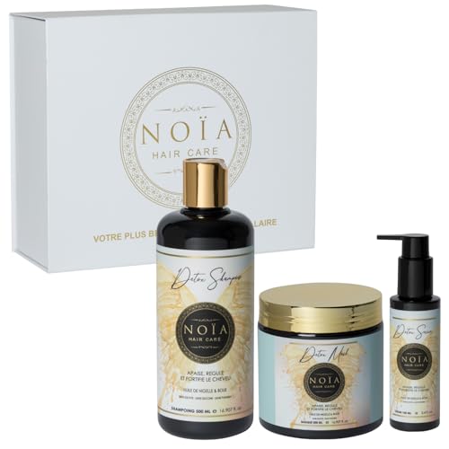 NOÏA HAIR – Coffret Trio Professionnel DETOX – Shampoing 500ml + Masque 500ml + Sérum 100ml – Purifiant & Anti-Pelliculaire – Rééquilibrant Cuir Chevelu – Cheveux Gras ou à Pellicules