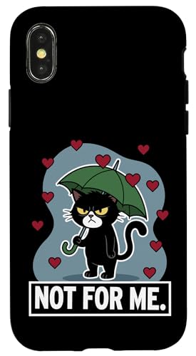 Chat Noir Not for Me Anti-Saint-Valentin pour Les Amoureux des Chats Coque pour iPhone X/XS