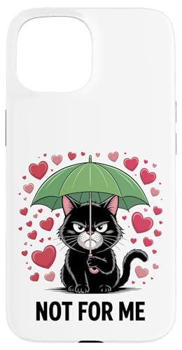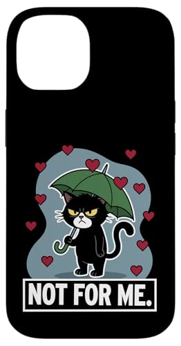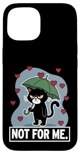 Chat Noir Not for Me Anti-Saint-Valentin pour Les Amoureux des Chats Coque pour iPhone 15