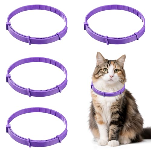 4 Pièces Anti Stress Chat, 38 x 1 cm Pheromones Chats, Collier Anti-Stress Chat, Collier Anti Puce Chat, Réglable Collier Apaisant, Étanche, Soulage L'Anxiété, pour Petits et Grands Chats, Violet