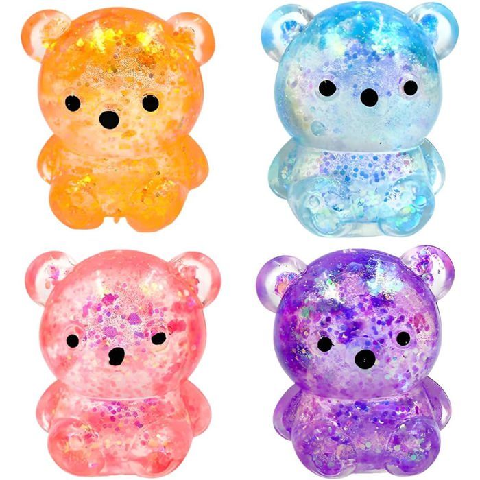 Jouet anti-stress squishy - JOZSI - 4 pièces - Ours de dessin animé - Bleu Rose Violet Orange - Matériau TPR