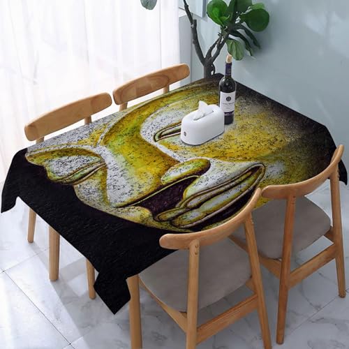 YOIUE Nappe Anti-Taches Lavable,137x183cm Nappe pour Table Rectangulaire pour Salle à Manger,Jardin,fête,Mariage ou Maison,Peinture Acrylique sur Toile représentant Un Visage de Bouddha