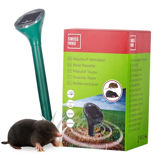 SWISSINNO Répulsif Solaire Taupes SuperCat – Appareil Ultrasonique Anti-Taupes et Campagnols – Énergie Solaire, Étanche, Protection Continue Extérieure, Grande Surface, Facile à Installer
