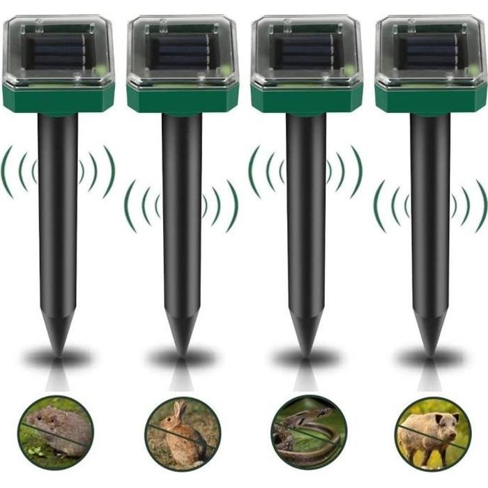 Lot de 4 répulsifs anti-taupes - Répulsif solaire à ultrasons pour animaux - Pour le jardin, arrêter les chats, rats, chiens, oiseaux, renards et autres