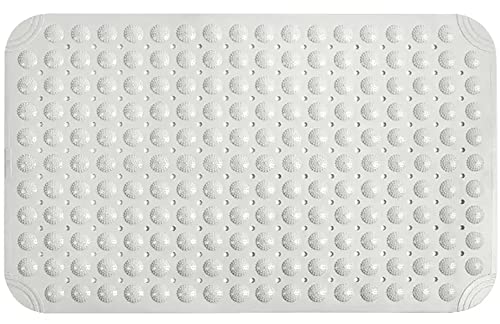 80x120cm Tapis de Douche Antidérapant,Tapis Antidérapant Douche avec Ventouses et Trous de Drainage,Grand Tapis Baignoire Antidérapant,Tapis de Bain Antiderapant pour Baignoire et Douche (Blanc)