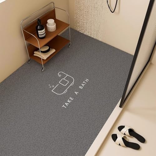 80x120cm Tapis de Douche Antidérapant,Tapis Antidérapant Douche avec Ventouses et Trous de Drainage,Grand Tapis Baignoire Antidérapant,Tapis de Bain Antiderapant pour Baignoire et Douche (Gris)