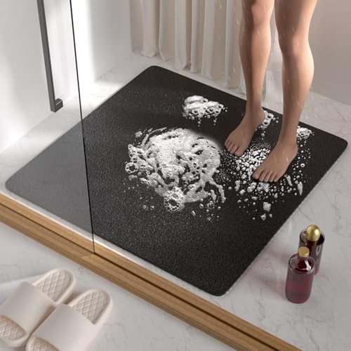 HITSLAM Tapis de Douche Antiderapant, 60x60cm Tapis de Baignoire Antidérapant avec drain, Doux PVC Luffa Tapis de Bain pour Salle de Bain, Séchage Rapide, Noir