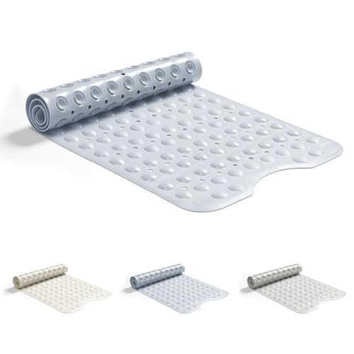 HITSLAM Tapis de Baignoire Antidérapant, 101 x 40cm Très Long Tapis de Douche Antiderapant, Résistant aux Moisissures & Lavable en Machine Tapis de Bain sans BPA, Gris