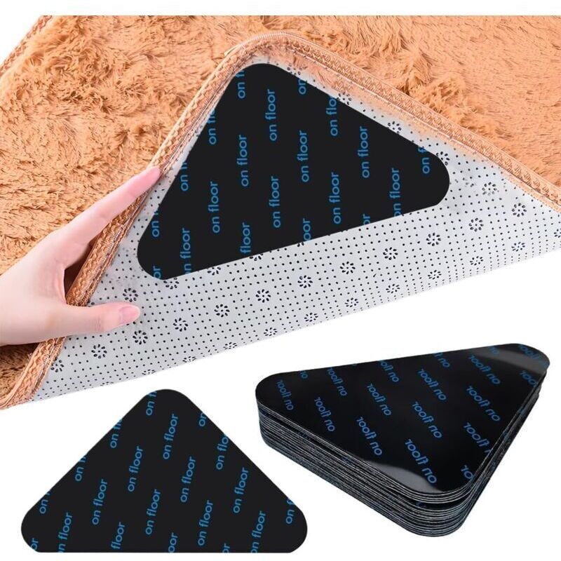 Grips pour Tapis, 8 Pièces Réutilisable et Lavable, Autocollants Antidérapants, Tapis Anti Glisse et Parquet Antidérapant, Adhésif Puissant,