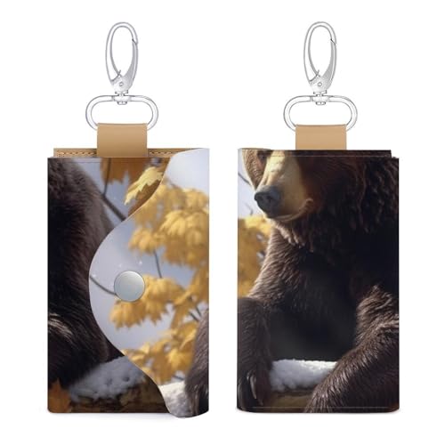 HJKBCV Protection de clé de voiture en cuir - Mini ours sur la branche - Pochette antivol étanche pour cartes de crédit - Pochette antivol pour clés de voiture, cartes bancaires, pièces de monnaie,