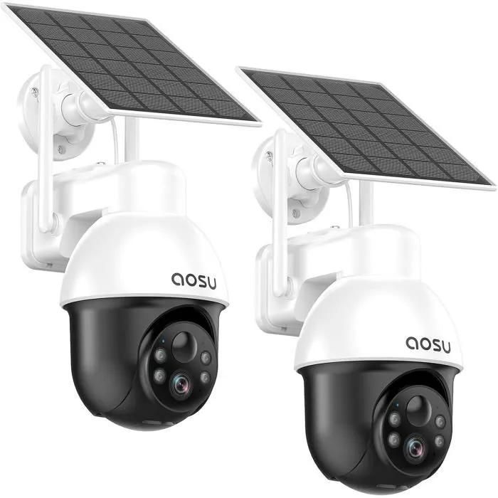 AOSU Caméra solaire WiFi, résolution 3MP, panoramique à 360 degrés, vision nocturne couleur