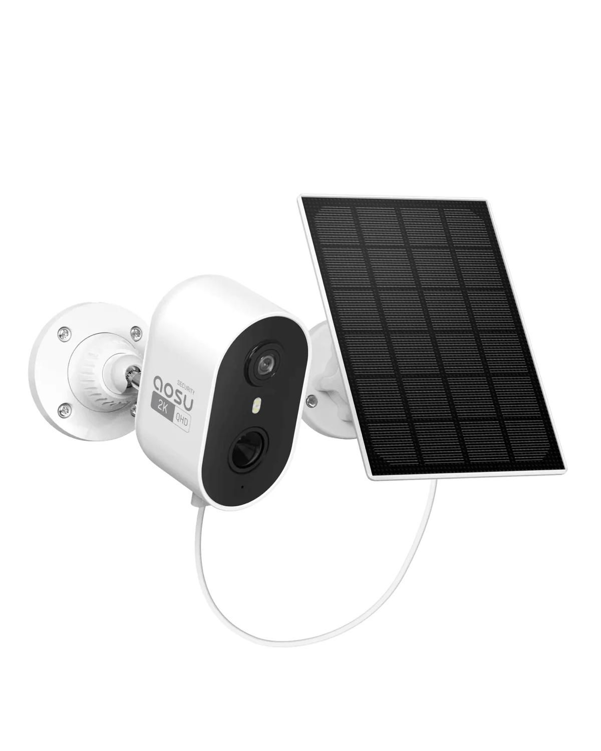 AOSU Système de caméra solaire sans fil 5MP, vision nocturne en couleur, détection de mouvement par radar, ivoire, prise européenne