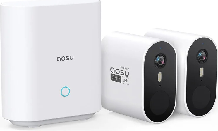 aosu 2K Caméra Surveillance WiFi Extérieure sans Fil, Kit 2 Caméras avec HomeBase, sans Frais Mensuels, 166° Ultra Grand Angle, Autonomie Jusqu’à 240 Jours Al Détection Vision Suivi Entre Caméras
